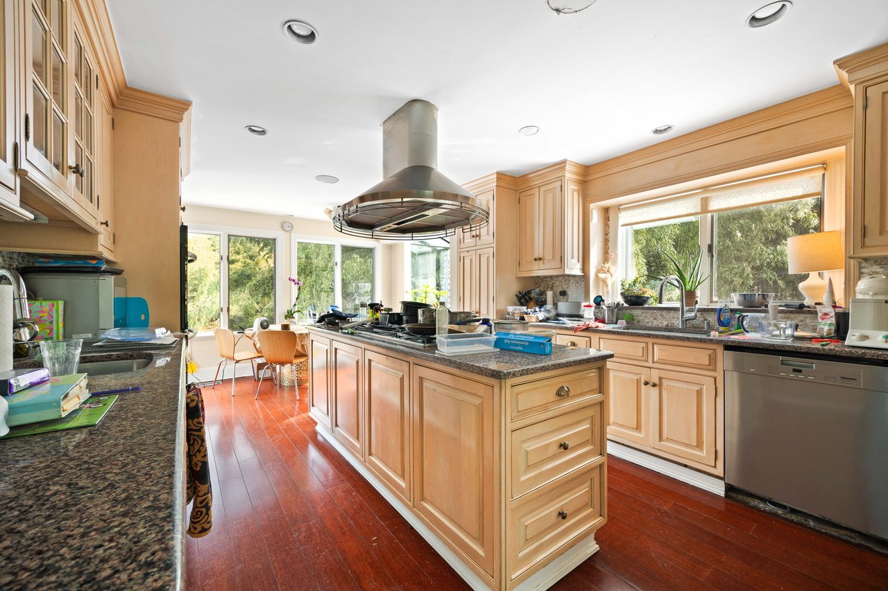 The custom built residence is composed of 6 bedrooms, 5.5 baths and highlighted by an oversized living room with a wood burning fireplace, formal dining room, home office/library, and a windowed eat-in-kitchen with a glass conservatory providing an abundance of natural sunlight. The chef's kitchen also offers high-end double appliances and granite countertops. The primary bedroom is set apart from the other bedrooms and offers an expansive ensuite and large closets. The full above-ground basement offers an additional kitchen, full bath, large play and storage rooms.