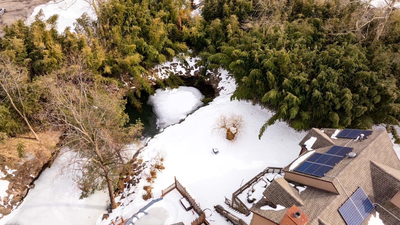 Unit 6 in the exclusive Delafield Estates is situated on a corner lot surrounded by mature trees, a lush green pond, and bamboo forest offering both seclusion and tranquility.